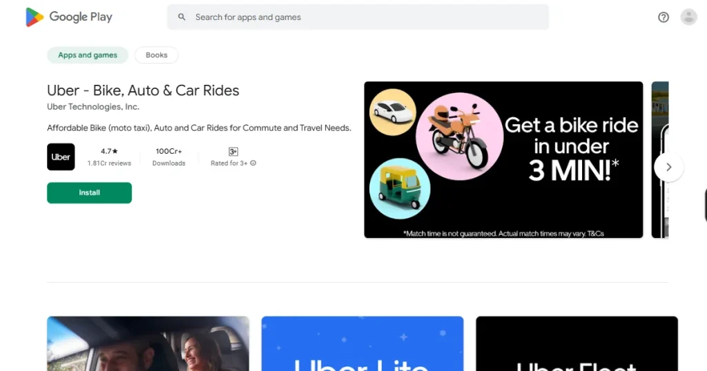 Uber walks users through the natural app flow like a story. The captions are short and benefit-focused, making the process feel simple without adding extra explanation.